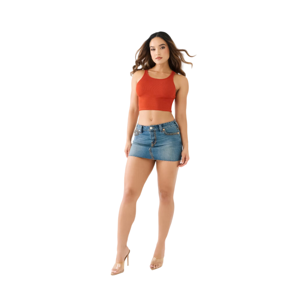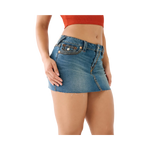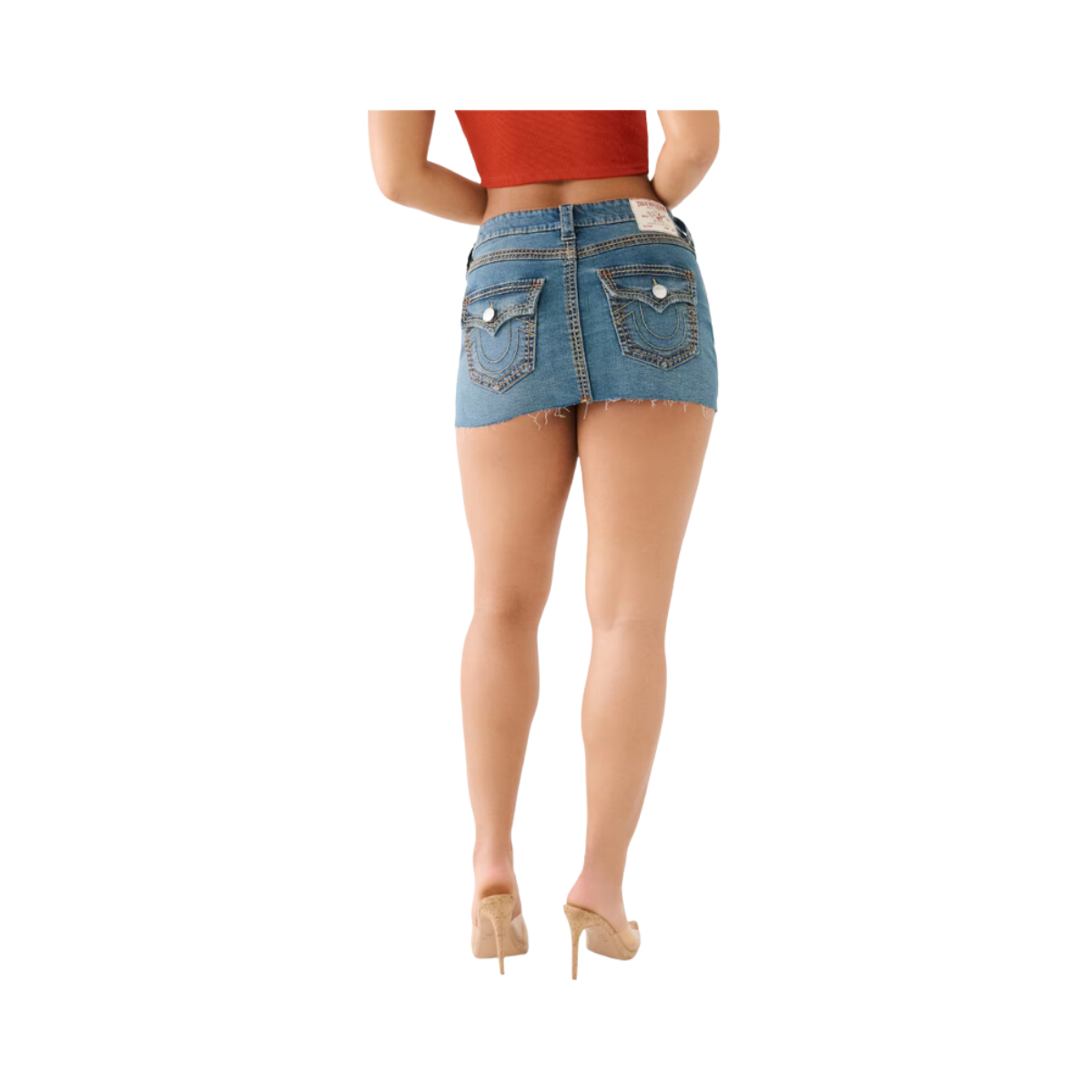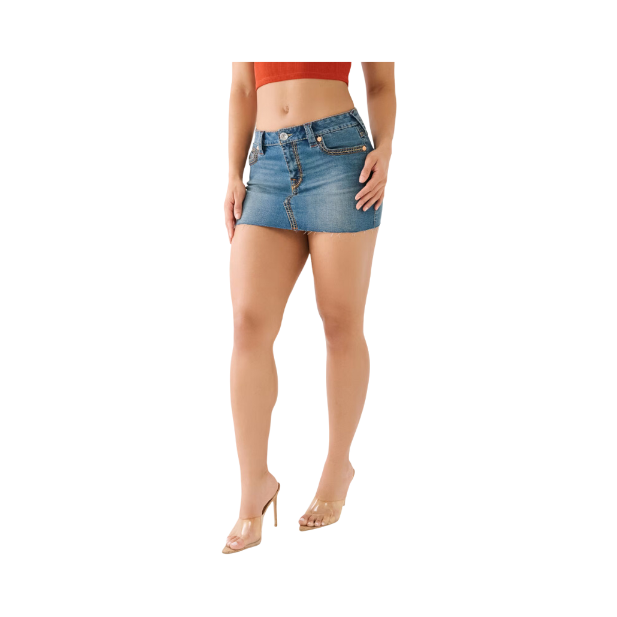 Styckpris / perEn mini-kjol i denim från True Religion. Tillverkas av stretchdenim för komfort och passform samt dragkedja i gylfen, bälteshällor och en råskuren fåll. Med den ikoniska sadelstickningen och True Religion-hästskor på bakfickan blir denna kjol både mångsidig och trendig.