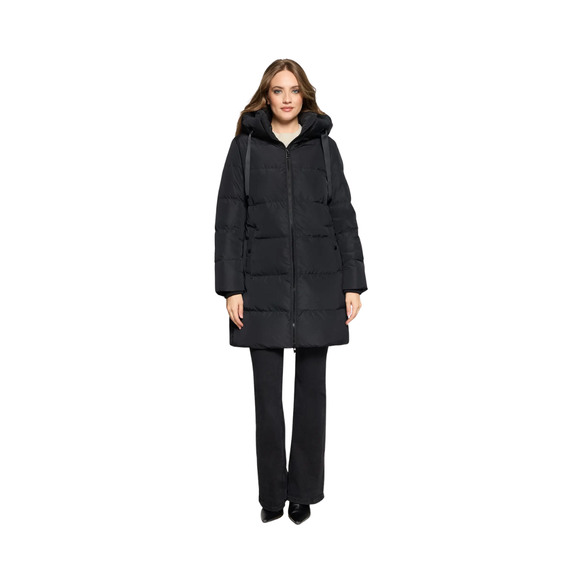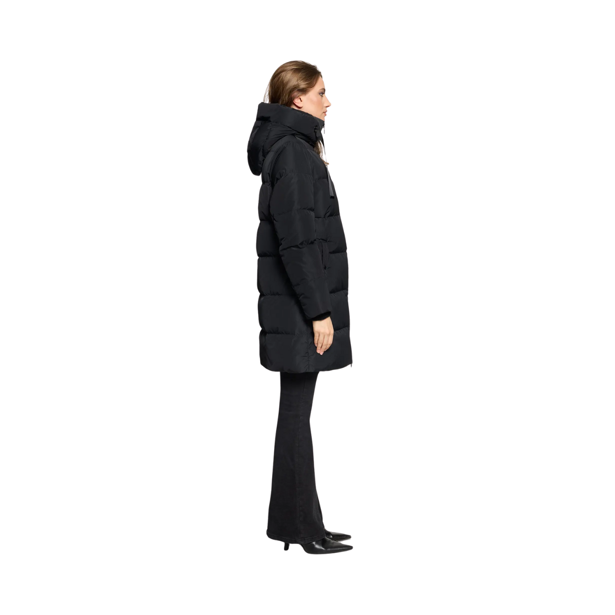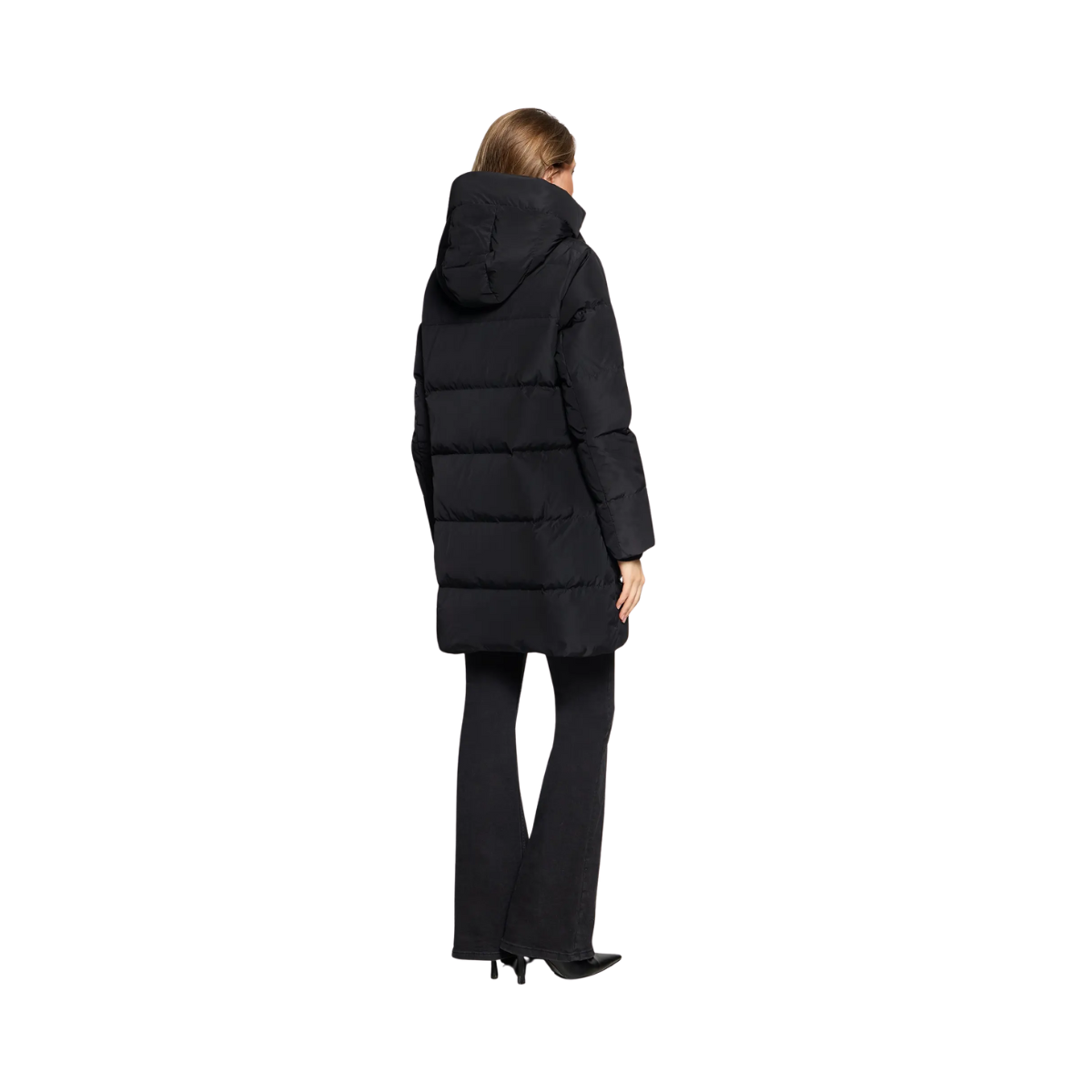 En midilång, varm dunjacka med en sportig och modern design. Jackan har två snedställda framfickor med knappstängning, frontdragkedja, ribbstickade muddar samt en mysig huva med dragsko. Samantha kombinerar mode och komfort på bästa sätt och är en perfekt vinterjacka för vardagens alla tillfällen.