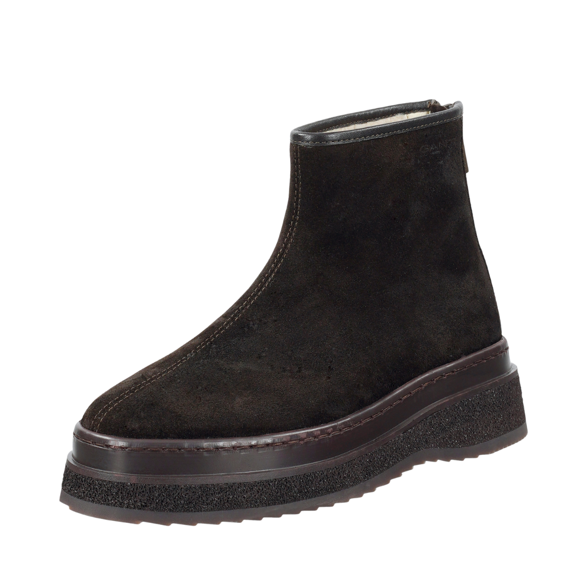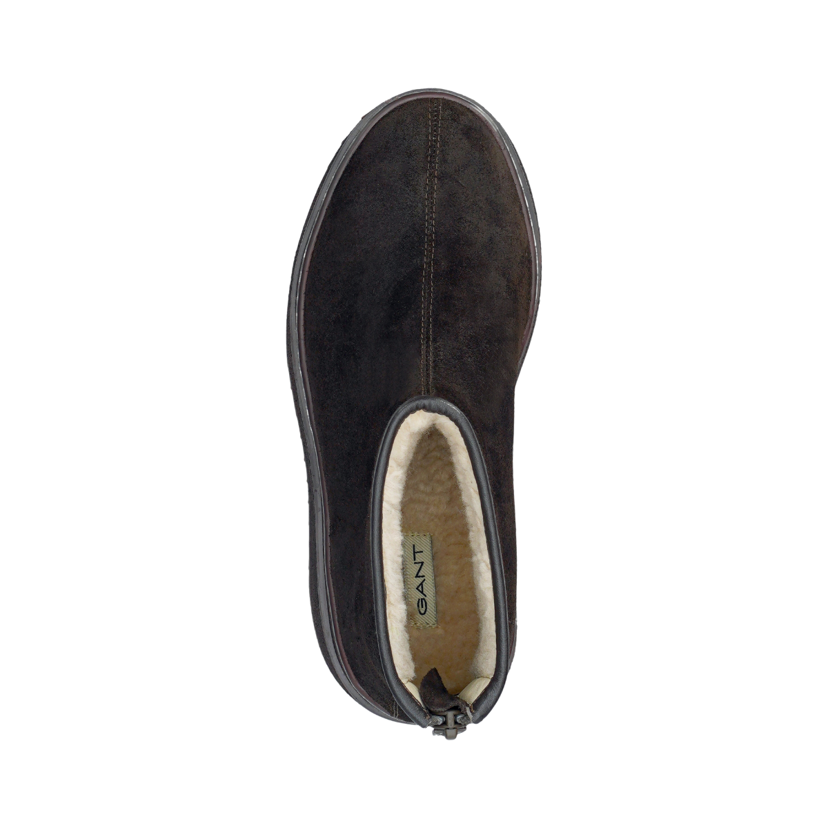 Klassisk vinterkänga i tidlös design. Ovandel i mocka och mjukt ullfoder ger en varm och ombonad känsla, medan dragkedjan i hälen gör den enkel att ta på och av.