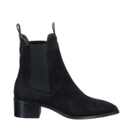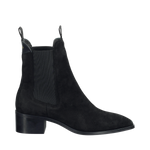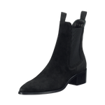 Elegant chelseaboot i mjuk mocka med klassisk silhuett, elastiska sidopaneler och dragflik bak för enkel av- och påtagning. Skon har spetsig tåhätta och blockklack som ger en wow-effekt till vilken outfit som helst. Med en ovandel i mocka med breda resårinlägg och en läderklädd innersula och textilfoder.