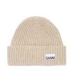Oversized Wool Rib Knit Mössa från GANNI. Mössan är tillverkad av en blandning av återvunnen ull och har en GANNI-logotyp.