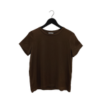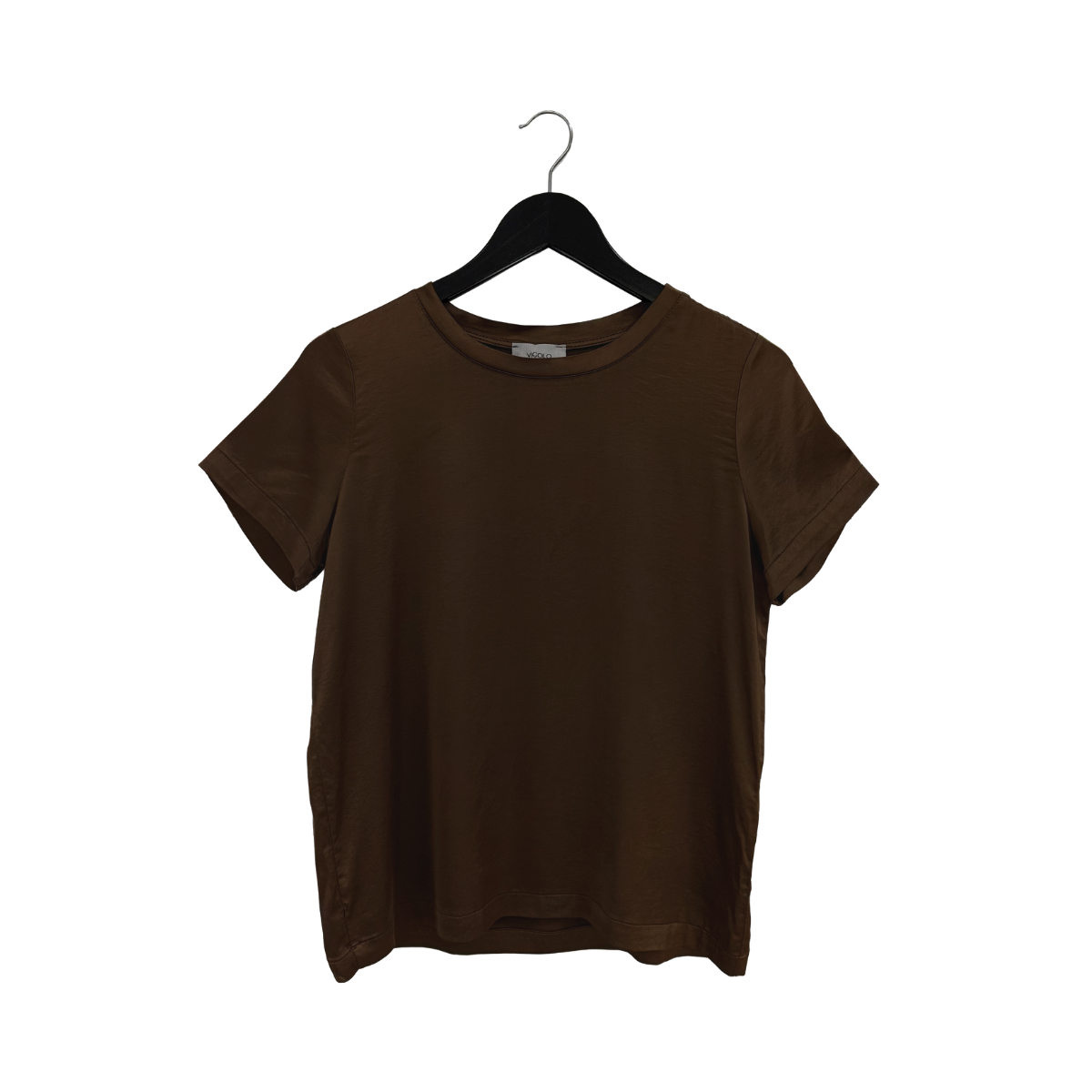 En kortärmad t-shirt med rund halsringning i satinliknande material som ger en elegant touch. Tillverkad i en mjuk och bekväm viskos-elastanblandning, perfekt för både vardag och fest.