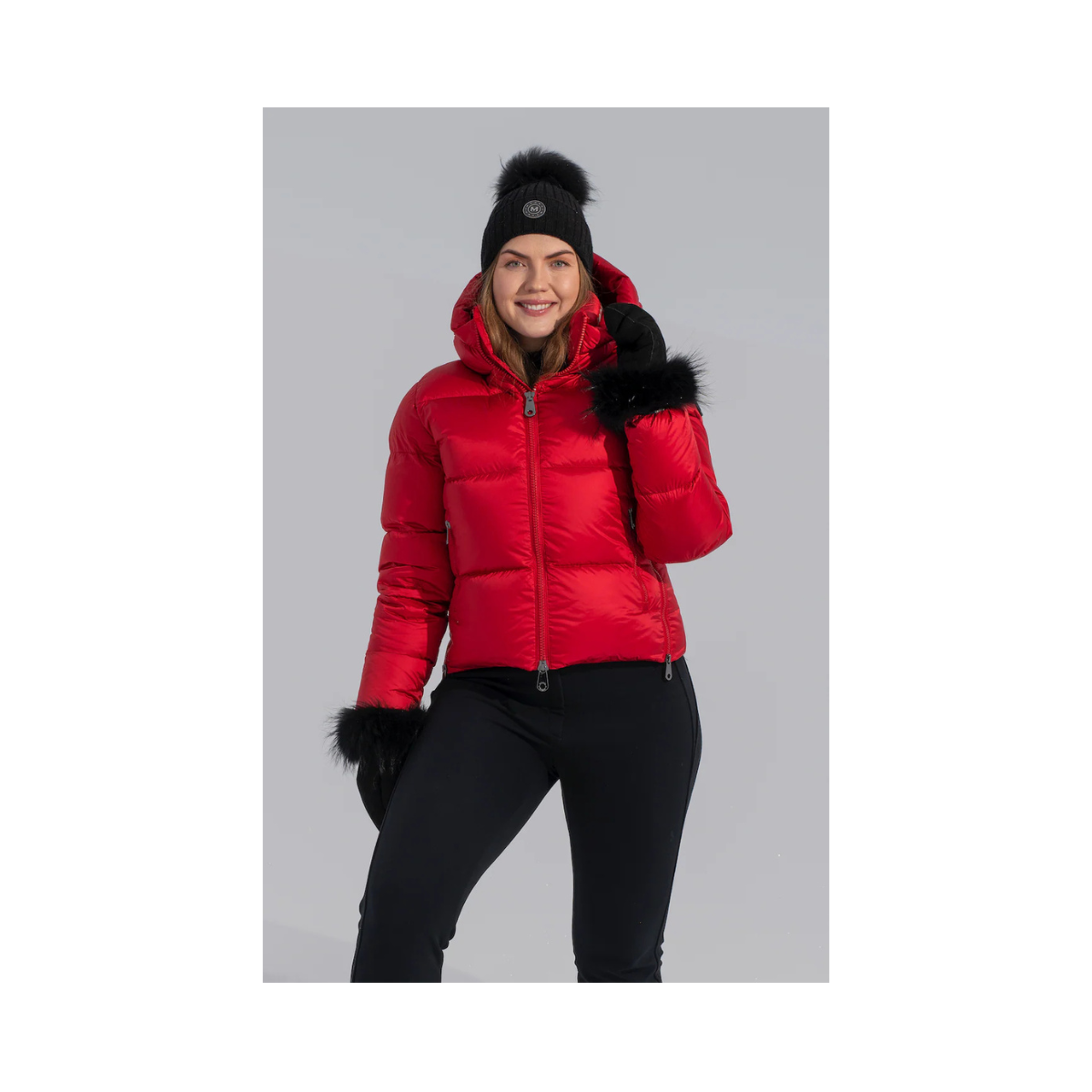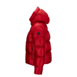 En kort, midjelång jacka med feminin passform som kombinerar stil och funktion. Den är dunfodrad för värme, har vattenavvisande material och praktiska detaljer som tvåvägsdragkedja, sidfickor och dekorativa dragkedjor. En modern och mångsidig jacka som passar både i stan och på tur.