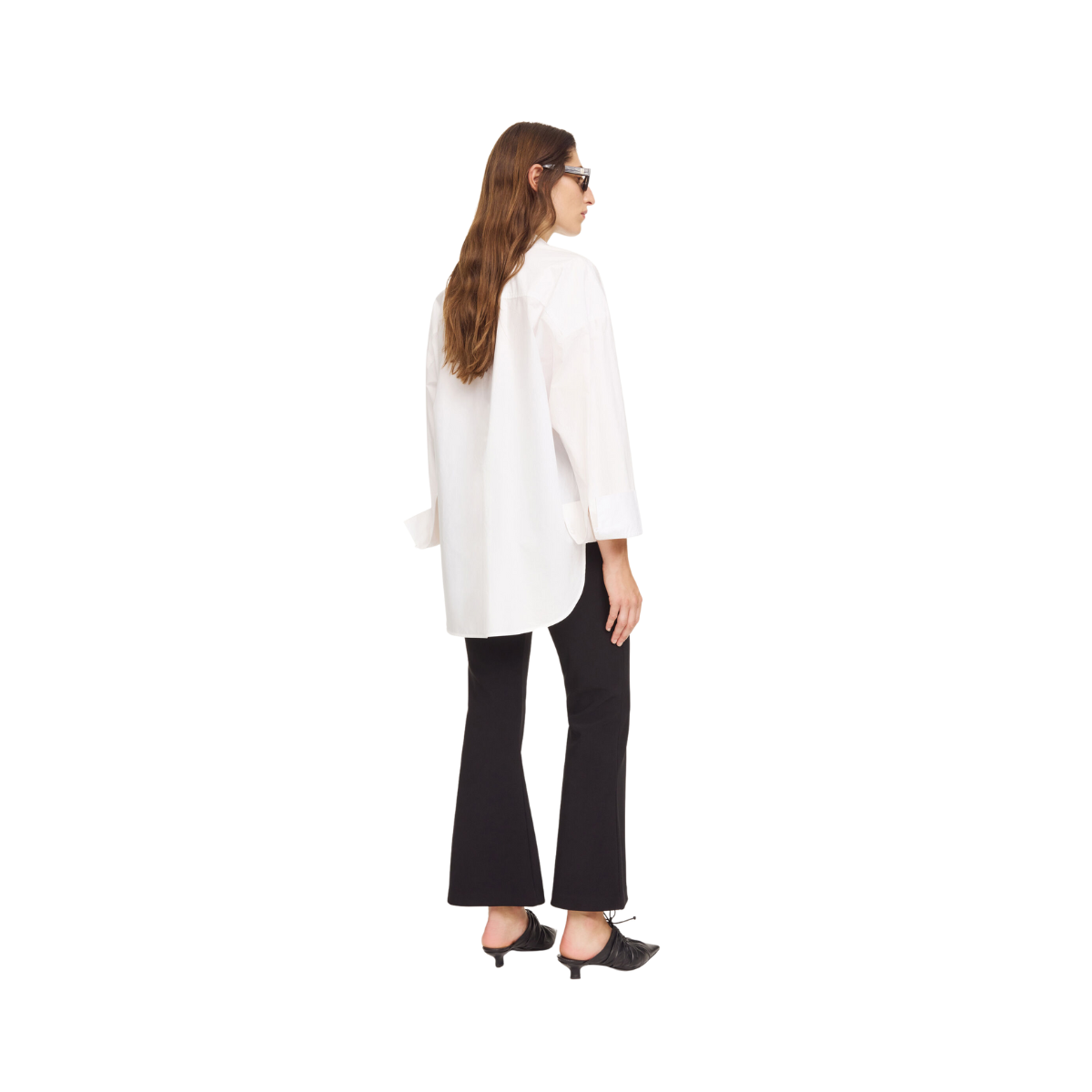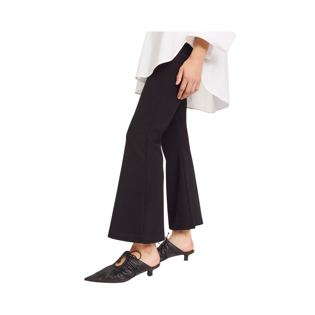 Ett par byxor i en lyxig materialblandning med bekväm midja, utsvängd siluett och kortare ben. Kombinera dem med en oversized blazer och stickade plagg för en stilren look som fungerar lika bra under veckan som på helgen.